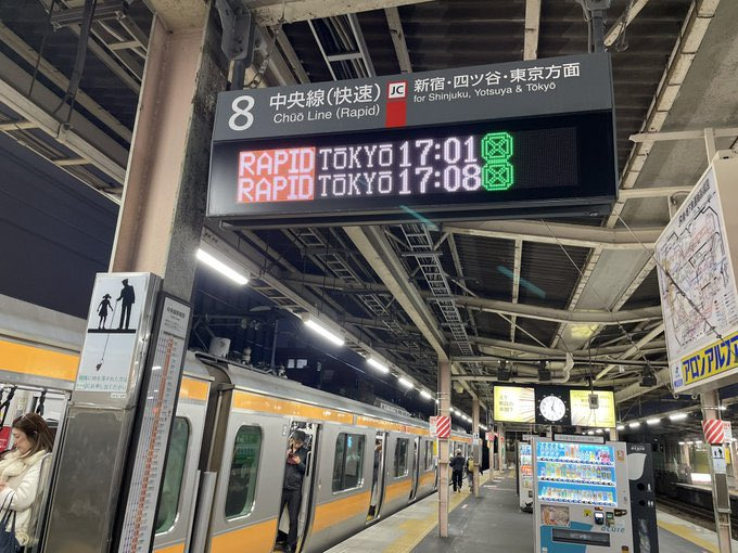 所用で中野駅から東京駅へ向かったところ、中央線快速電車の夕ピークの時間帯で混雑が激化。八王子や立川、吉祥寺方面からの旅客が新宿や東京方面で乗降する傾向にあることに加え、今年3月からのダイヤ改正でグリーン車(2両)の運転が始まったことにより、グリーン車の隣の車両を中心に押し屋が必要なほどの混雑に見舞われた。1番後ろの12号車(高尾方)に移動したところ比較的空いていたので、こちらの利用をオススメしたい。